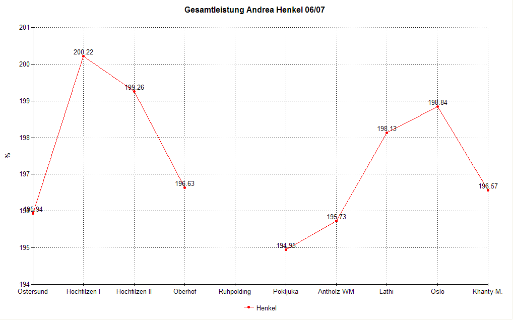 Andrea Henkel war die einzige deutsche Top Biathletin die sich sowohl im Laufbereich wie auch beim Schießen gegenüber der Saison 20005/06 verbessern konnte und dadurch auch den größten Leistungssprung machte.
