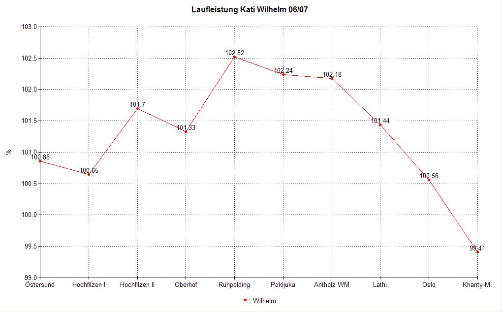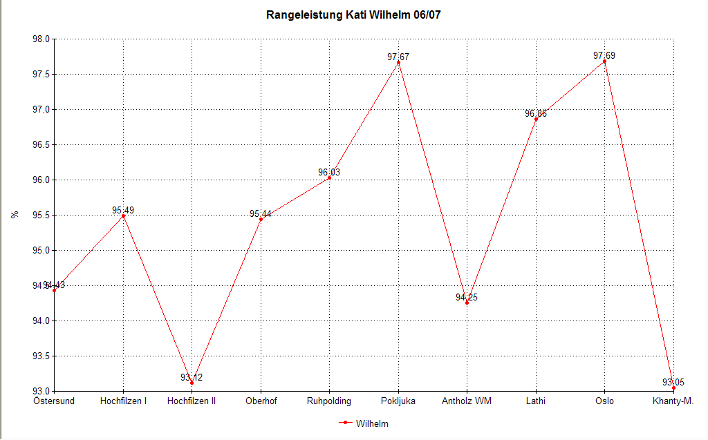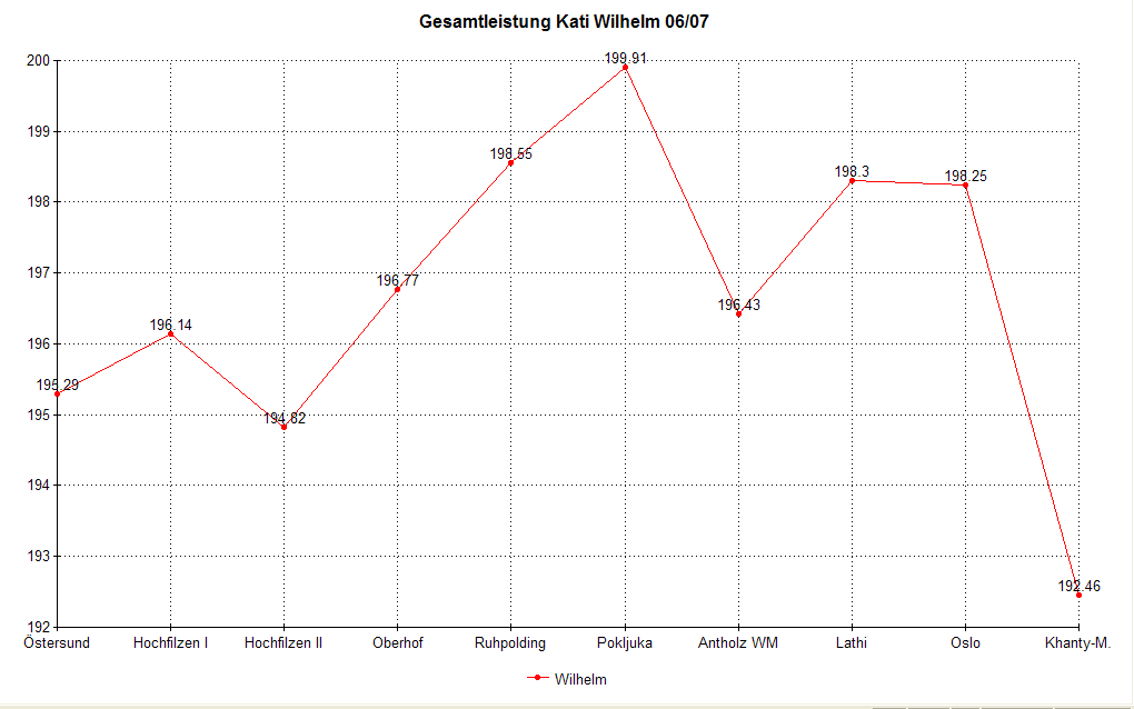 In den letzten beiden Jahren war Kati Wilhelm die beste deutsche Biathletin gewesen und wurde 2006 sogar zur "Sportlerin des Jahres" ausgezeichnet. Wie stark sie in der Saison 05/06 war, wird dadurch verdeutlicht dass sie zwar im Gesamtindex 1,58 Prozentpunkte in diesem Jahr einbüßte aber trotzdem noch Zweite im Gesamtweltcup wurde.